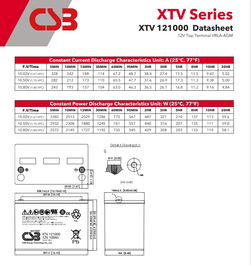 XTV来自于英文 extreme temperatures version之缩写,代表着极端温度版本。此系列特别适用于在严苛温度条件下仍需要充足电池性能之应用,主要特点如下: 1 当电池安全环境下使用时,则无须维护及补充水分,并且可以反覆充放电 2 因为完全密闭,所以可以垂直、水平或侧向放置,且不影响安全性及功能性 3 以自动化制程搭配独特之铅钙合金配方,有效减少气体排放 4 长寿命、低自放电及高可靠度 5 其安全及低内阻带来了良好地充放电性能改善 6 电池外壳依型号可采用符合UL 94V-0之耐燃ABS或PP材料 7 适合待机使用 8 高率放电设计 9 深放电恢复 10 电池皆透过专利电脑化充放电系统严格测试 11 通过ISO9001, 14001, OHSMS 18001 认证 12 通过UL 1989认证 (档案编号 MH14533) 13 航空运输符合IATA/ICAO A67条款 14 水路运输符合非危险物品MG27修正类别 15 公路运输符合【Dry charge】 49CFR 171-189许可 16 创新之极板结构有效提升于严苛环境下的使用寿命 17 达成不影响性能仍可降低热逸走风险之崭新铅膏配方 浮充使用: 不断电系统 工作站不断电系统 紧急照明设备 精密仪器备载电源 火灾警报及保全系统 通信及电子设备 办公室电脑, 处理器及其他办公室自动化设备 机器人, 自动控制设备及其他工厂自动化设备 发电厂及变电站之紧急电源供应 电信基地台 各式遥测设备 太阳能: 路灯 移动式电源供应器 抽水站 区域性电力系统 |